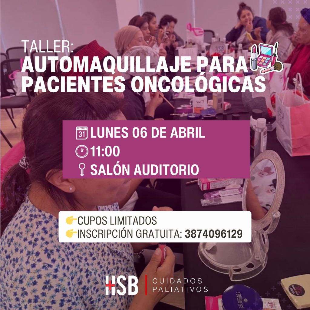 El Servicio de Cuidados Paliativos del Hospital San Bernardo y el Programa Luzca Bien y Siéntase Mejor, llevarán a cabo, el lunes 06 de abril, un taller de automaquillaje para aquellas pacientes que se encuentren realizando o estén por iniciar un tratamiento oncológico. Este espacio, completamente gratuito, será dictado por maquilladoras profesionales voluntarias del ámbito salteño.